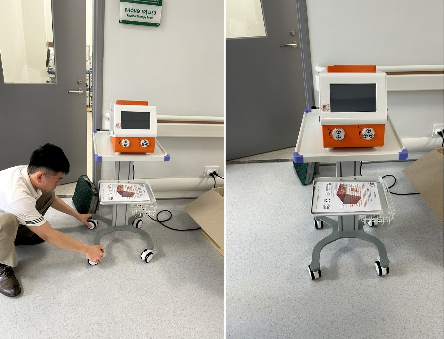 Ngày 7 tháng 5 năm 2025. Kĩ sư công ty đã hoàn thành bàn giao máy vỗ rung lồng ngực tự động và tạo dao động tần số cao HFCWO Respln 11 do hãng RespInnovation SAS – Pháp (G7) sản xuất tại Viện Bảo vệ chăm sóc sức khỏe cán bộ Trung ương (A11) - Bệnh viện Trung ương Quân đội 108