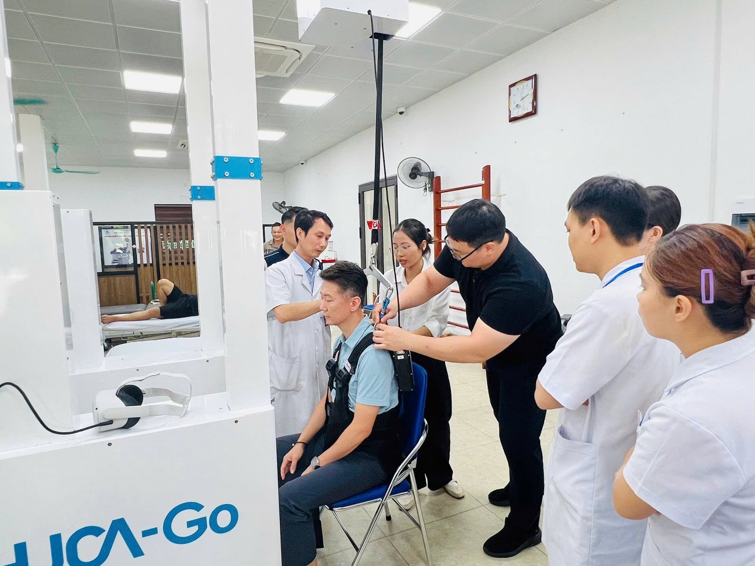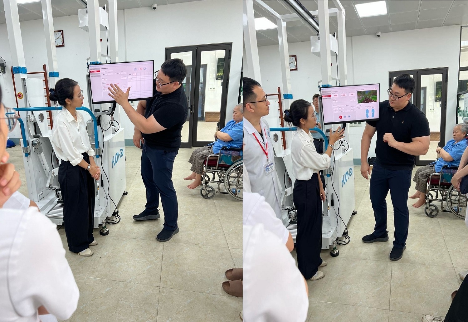 Ông Kim Hyeongsic, Tổng giám đốc Công ty HUCA System - Hàn Quốc cho biết thêm HUCA-Go là hệ thống tổ hợp các thiết bị tập chỉnh hình có robot hỗ trợ, được sử dụng dưới sự giúp đỡ của chuyên gia tại cơ sở điều trị chuyên môn. Hệ thống cung cấp các chức năng để hỗ trợ bệnh nhân bị tổn thương về hệ thần kinh trung ương, giúp cải thiện chức năng dáng đi, nâng cao chất lượng cuộc sống người bệnh. Không chỉ hướng dẫn chuyển giao chi tiết về thiết bị, hỗ trợ lắp đặt, vận hành mà chúng tôi sẽ tiếp tục đồng hành, giúp đỡ đơn vị trong quá trình triển khai, thực hiện các kỹ thuật tập luyện với công nghệ hiện đại nhằm nâng cao chất lượng điều trị tại Bệnh viện.