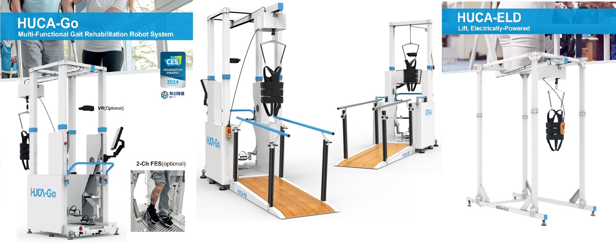 Hệ thống ROBOT tập PHCN, huấn luyện và điều chỉnh dáng đi HUCA-Go do HUCASYSTEM Inc, Hàn Quốc sản xuất là Hệ thống thiết bị tập chỉnh hình có robot hỗ trợ được sử dụng dưới sự giám sát của chuyên gia tại cơ sở điều trị chuyên môn. Sản phẩm được sử dụng trong phục hồi chức năng đi lại, giúp bệnh nhân trưởng thành bị suy giảm khả năng đi lại nhẹ/nặng do bệnh thoái hóa não, đột quỵ, sau phẫu thuật chi và các yếu tố khác làm suy giảm chức năng vận động điều chỉnh tốc độ phục hồi chức năng đi lại và độ dài sải chân tùy theo dáng đi của bệnh nhân và cung cấp lực hỗ trợ trong quá trình phục hồi chức năng đi lại